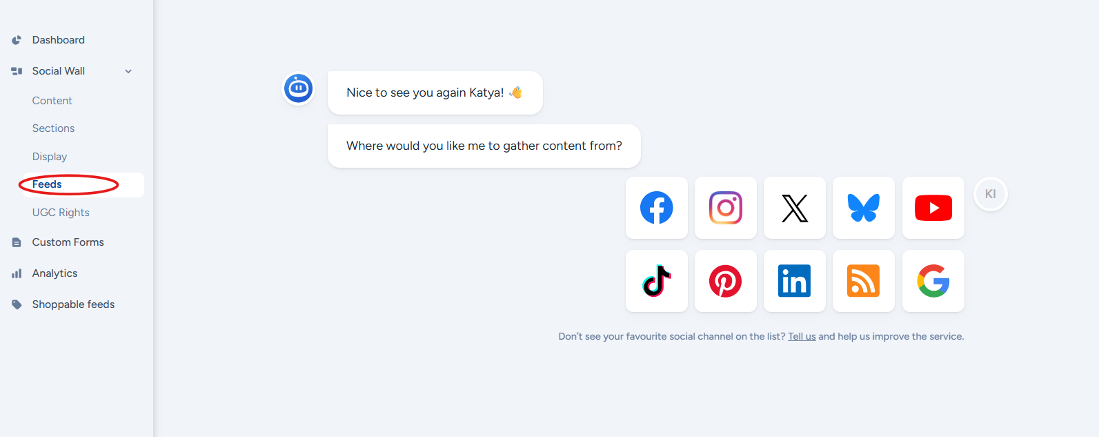 1. Create Automated Feeds to gather content from IG, FB, X, Bluesky, YouTube, and more