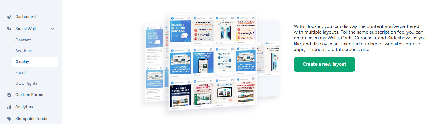 Flockler lets you add Social Walls, Grids, Carousels, and Slideshows to your website without any technical skills. You can also create Social Wall and Slideshow layouts for digital screens. Check how to use Flockler for events here