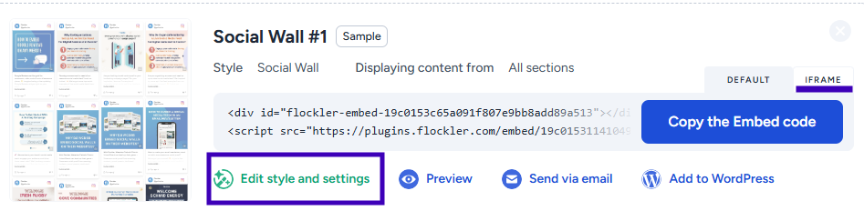 Once you’ve selected a layout, you’ll receive an embed code you can add to any website or digital service. An iframe version is available as well.