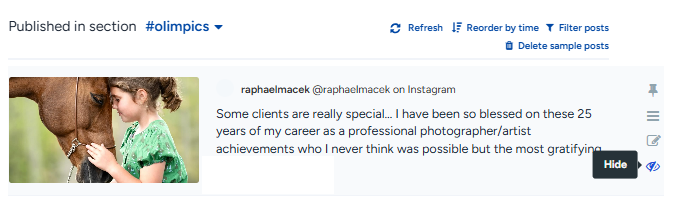 On the available options on the right of the posts, click 'Hide' on the one you want to move