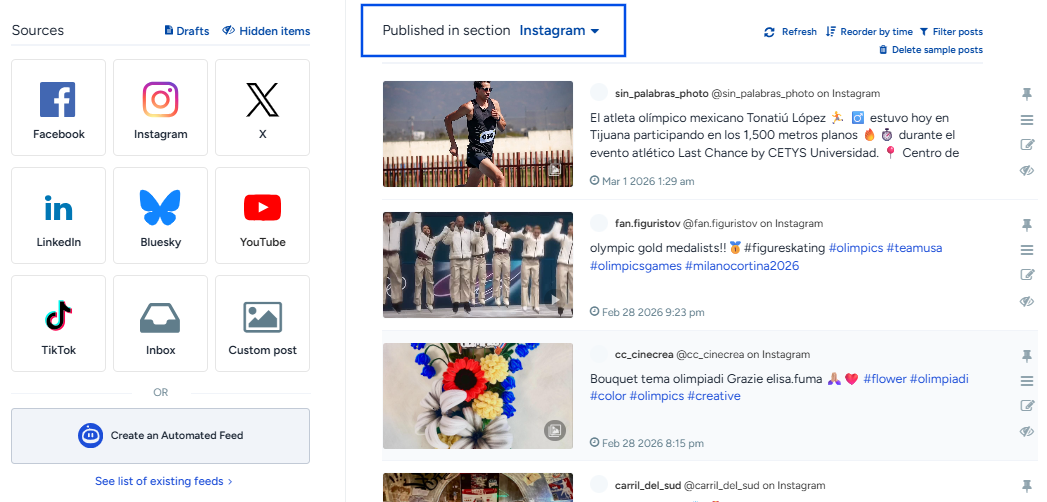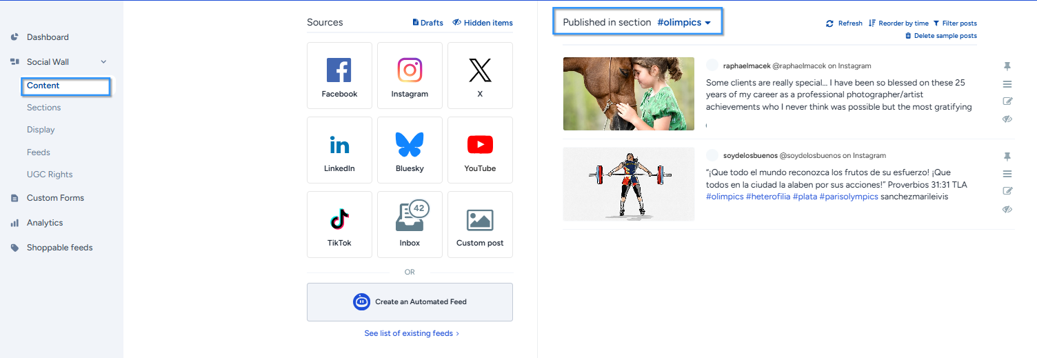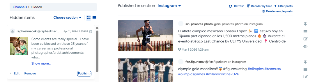 Publish that post to make it visible in the new section.