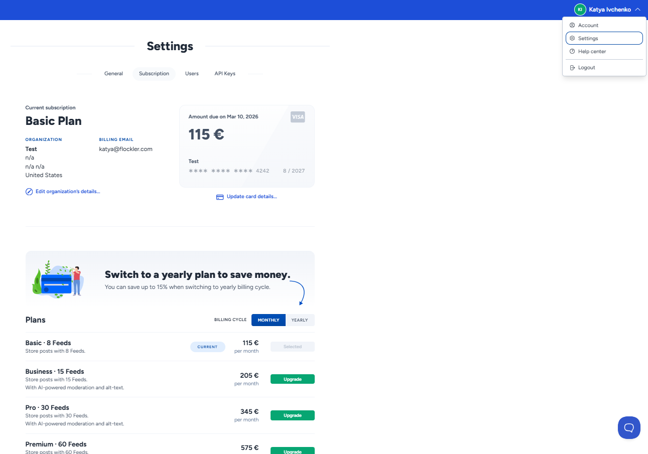 - Go to Settings → Subscription