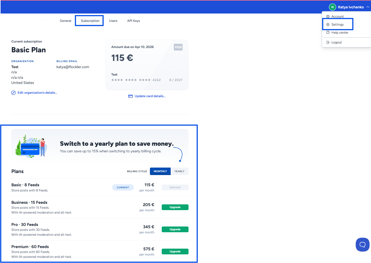 You can upgrade or downgrade your Flockler subscription at any time from your account settings.