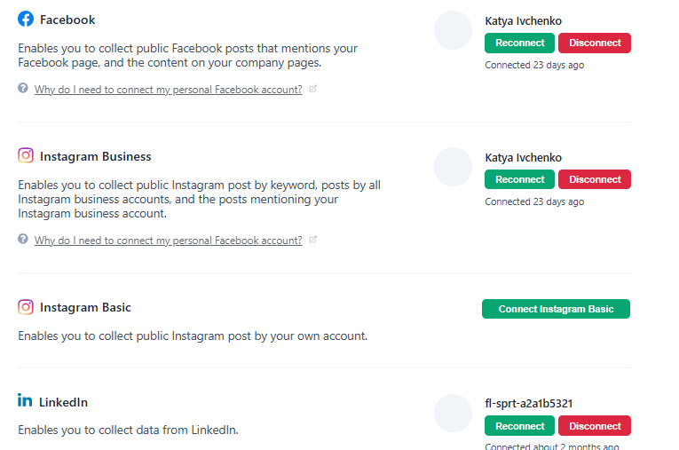 If you’ve recently changed the password of one of your social accounts — or if you simply need to connect a different account — you can easily reconnect at any time: