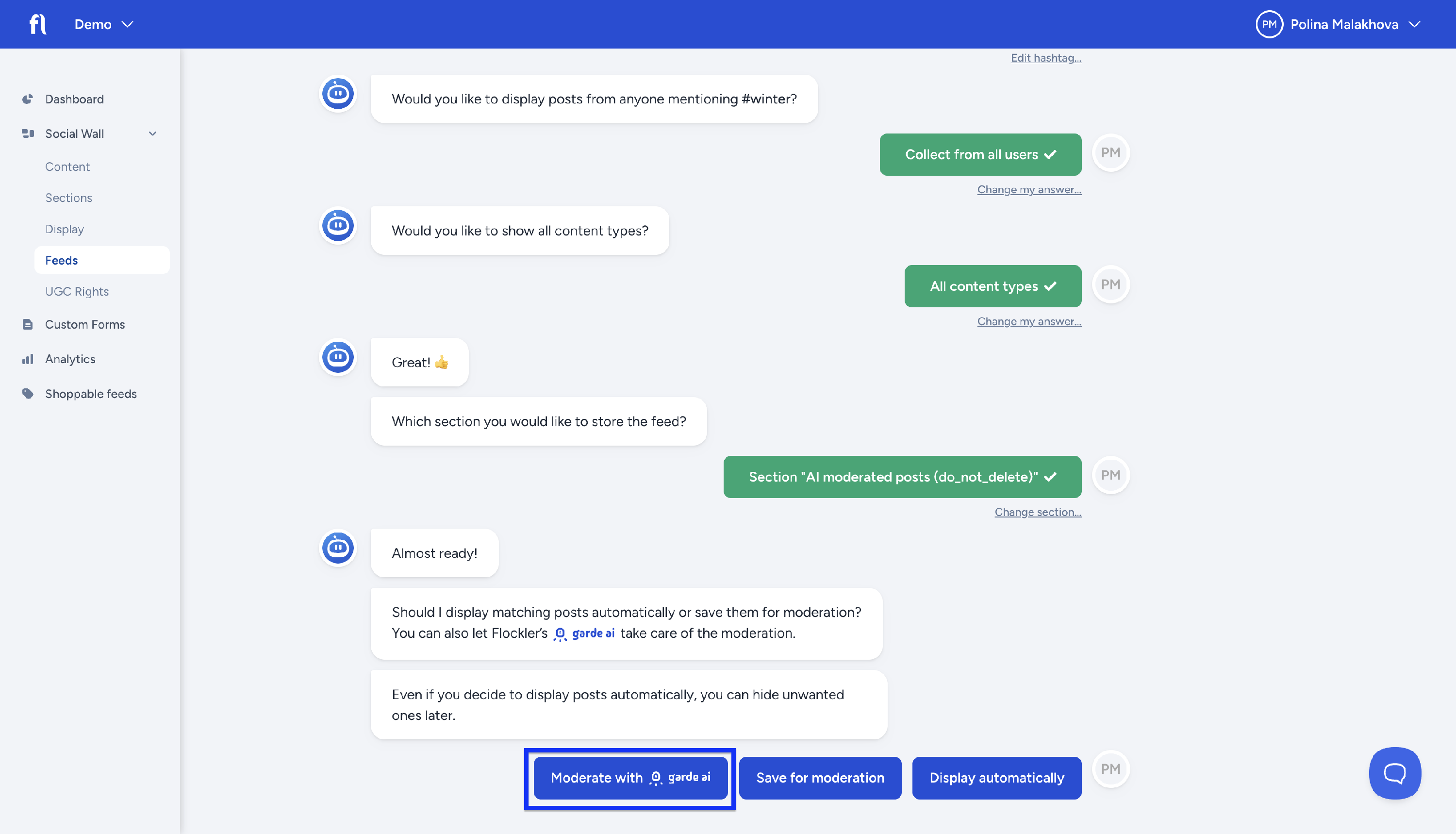 - Select "Moderate with Garde AI" when setting up your feed (for eligible plans).