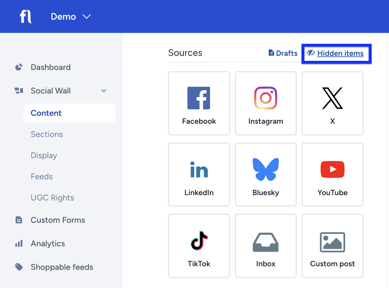 - Rejected posts will be saved under Hidden Items in the related Section: