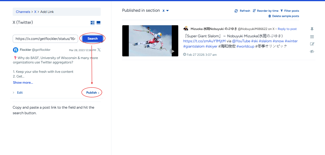 However, if you want to add a tweet without creating a feed in an existing section, here’s how to add any public tweet to Flockler manually.