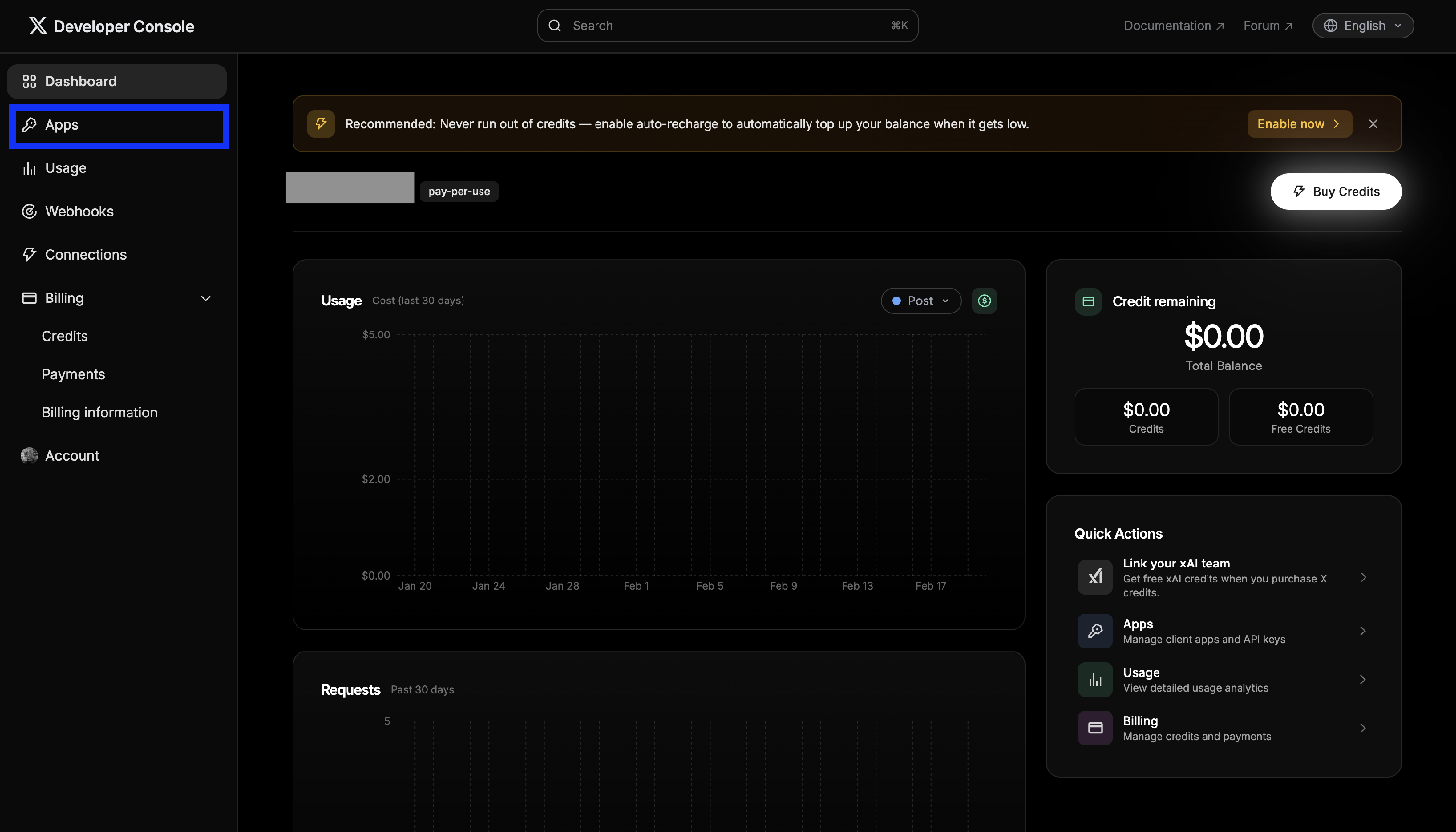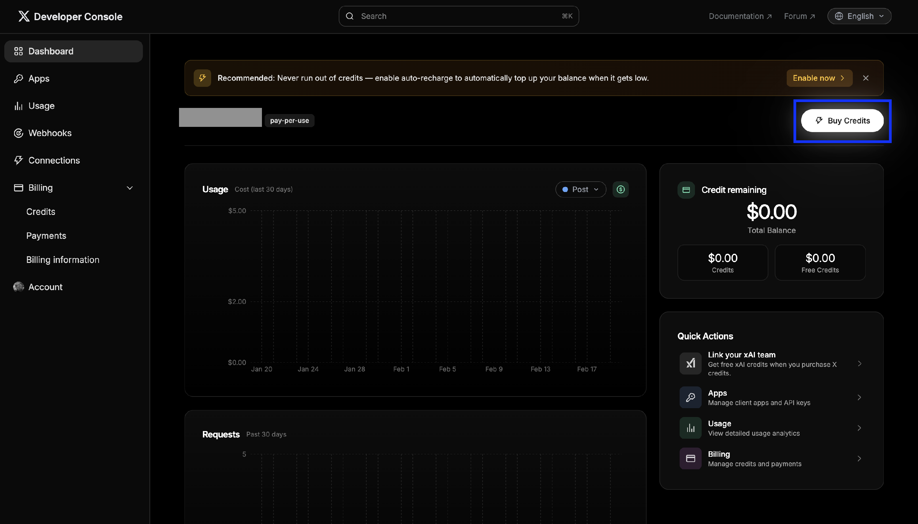 - Add a payment method or purchase API credits