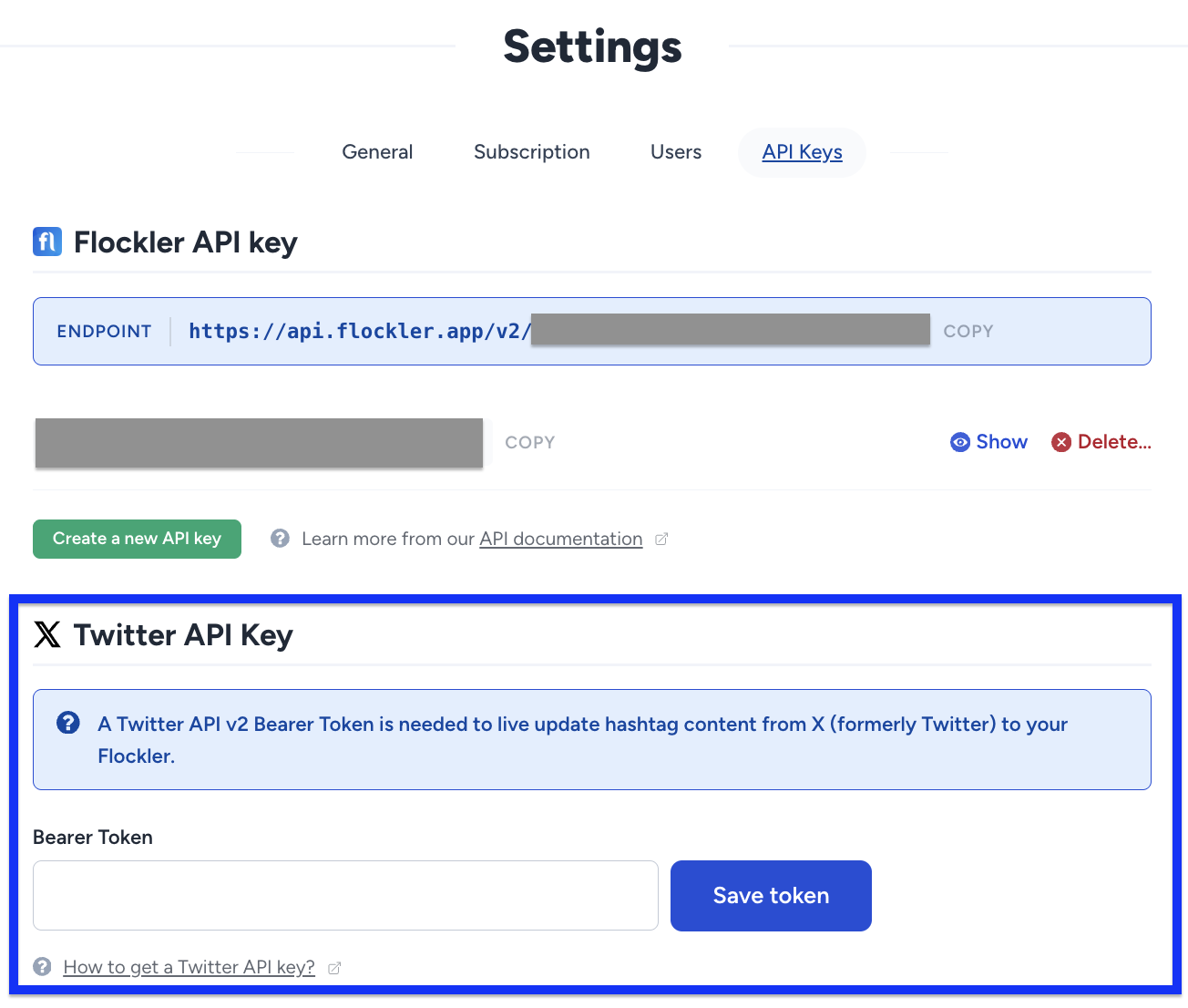 - Add the Bearer Token to your Flockler account settings