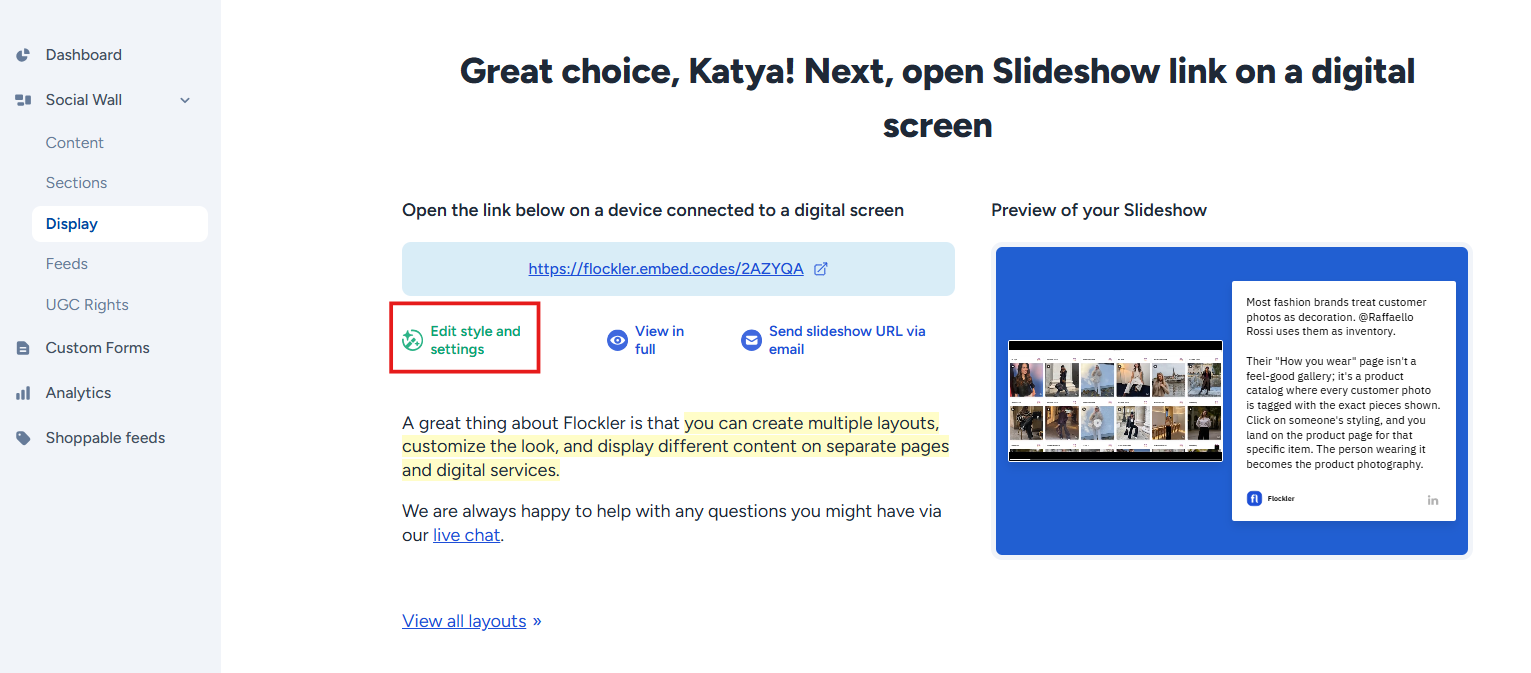 - If you don’t have a Slideshow for digital screens yet, click the 'Add a new layout' button
