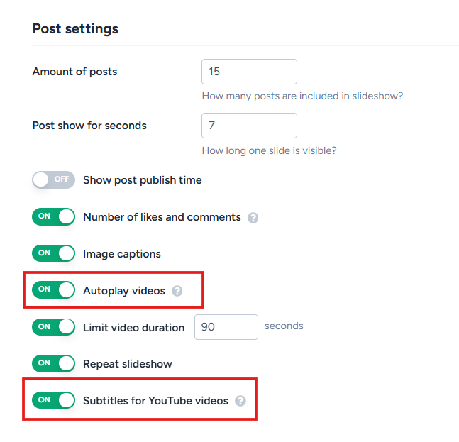 If you are using Flockler’s Slideshow for digital screens and have enabled the 'autoplay' option for videos, you can choose to show subtitles/captions too. While the sound of the video can’t be played without user interaction, enabling the subtitles/captions helps viewers follow what’s going on in the video.