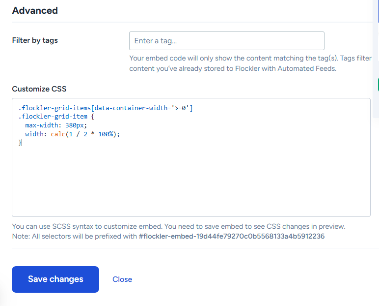 For example, if the area width is smaller than 600px, Flockler shows the wall and grid layouts in one column. On the other hand, when the area grows beyond 900px, Flockler shows three columns or more depending the area size.