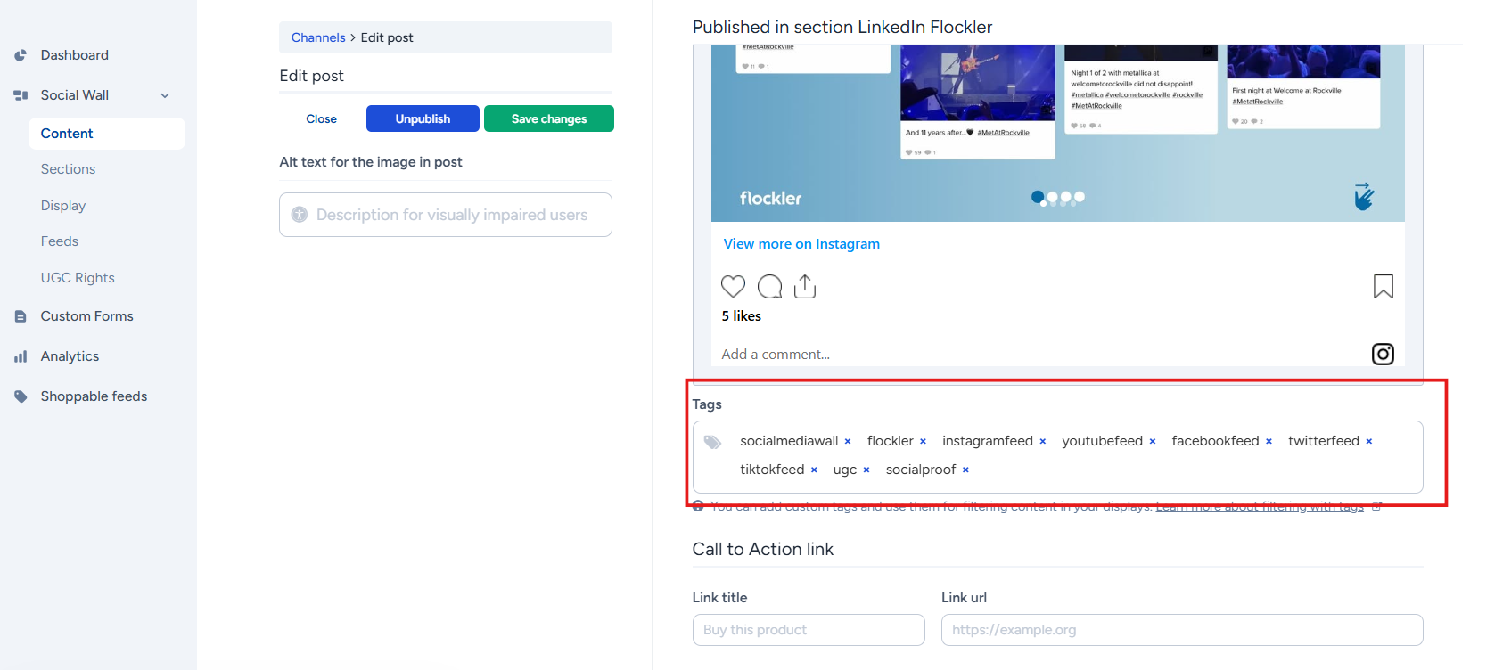 …will be pulled into Flockler, and every one of those hashtags becomes a tag you can use for filtering.