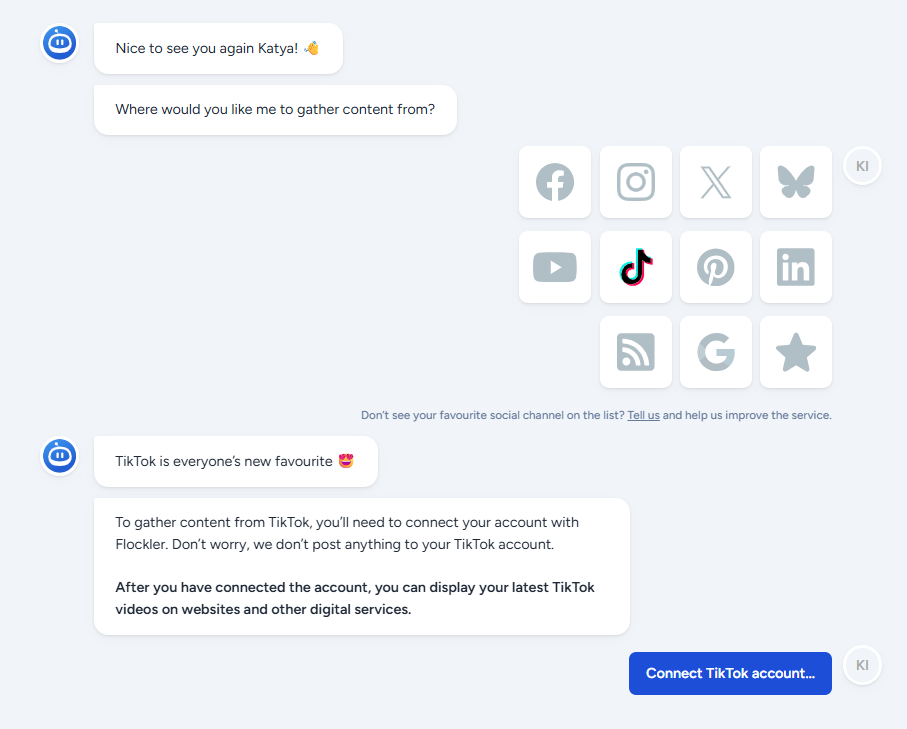 Select if you’d like to display TikTok videos automatically or moderate with AI or manually