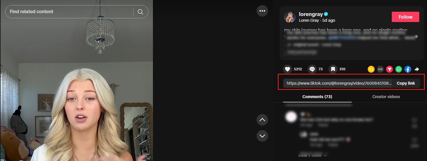 Once you’ve found a post you like, click to open it and copy the URL of the video. Follow these steps:
