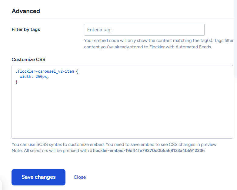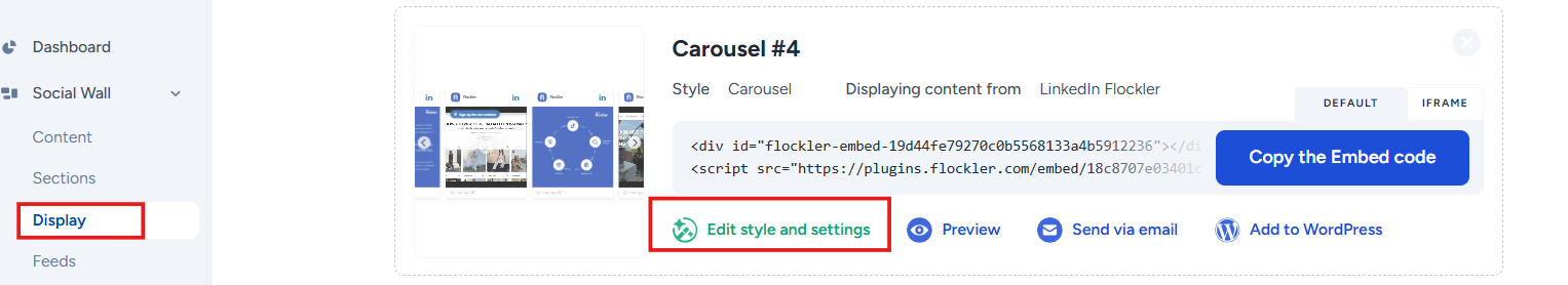 - Click 'Edit style and settings' for the carousel embed that you’d like to edit.
